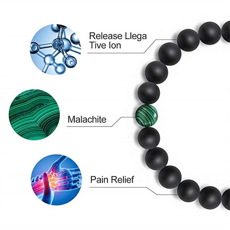 2 pieces/Set 8mm Natural Malachite Stone Bracelet Couple Bracelet Black Matte Green Stone Beads Bracelets
