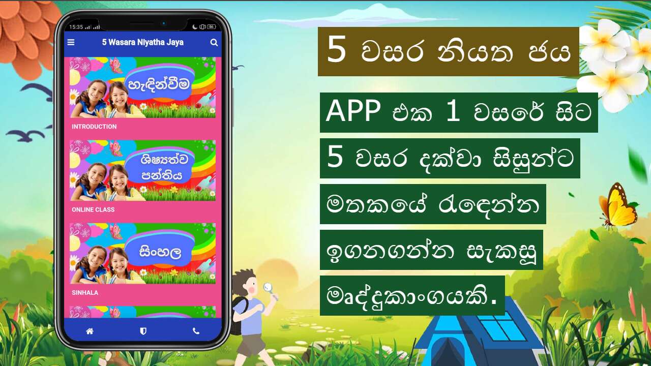 5 වසර නියත ජය යෙදුම සකසා ඇත්තේ 1 2 3 4 5 යන වසර දරුවන් සඳහා ස්වයං අධ්‍යයනය සඳහා මඟ සැලසෙන අතර ශිෂ්‍යත්ව විභාගයෙන් විශාල ළමුන් පිරිසක් සමත් කළ ගුරුතුමියන් දෙපලක් විසින් ශිෂ්‍යත්වයට පෙනී සිටින දරුවන් උදෙසා ක්‍රමානුකූලව ශිෂ්‍යත්වය සමත් කිරීම සඳහා Online පන්තියක් මගින් අත්‍යවශ්‍ය විෂය කරුණු ඉගැන්වීම සහ ප්‍රශ්ණ පත්‍ර සාකච්ඡා කිරීම සිදුකරන අතර