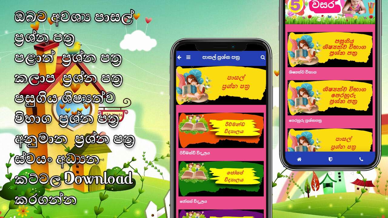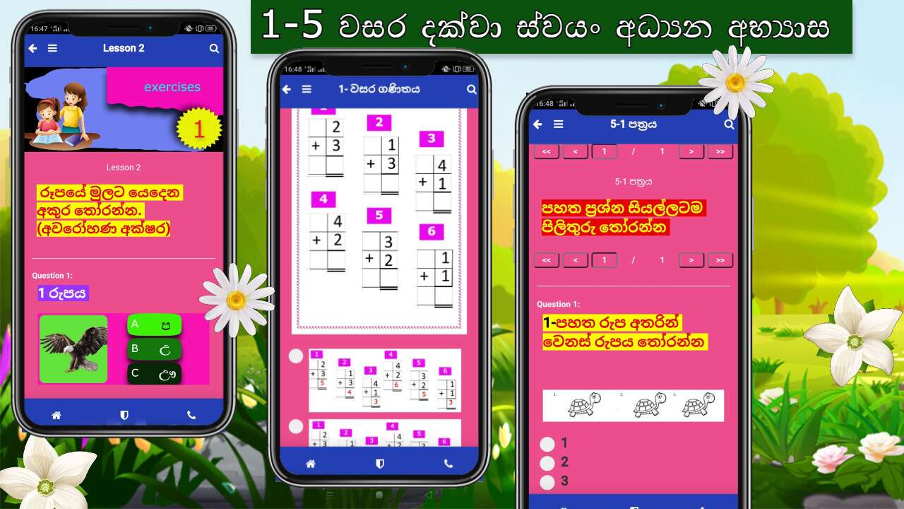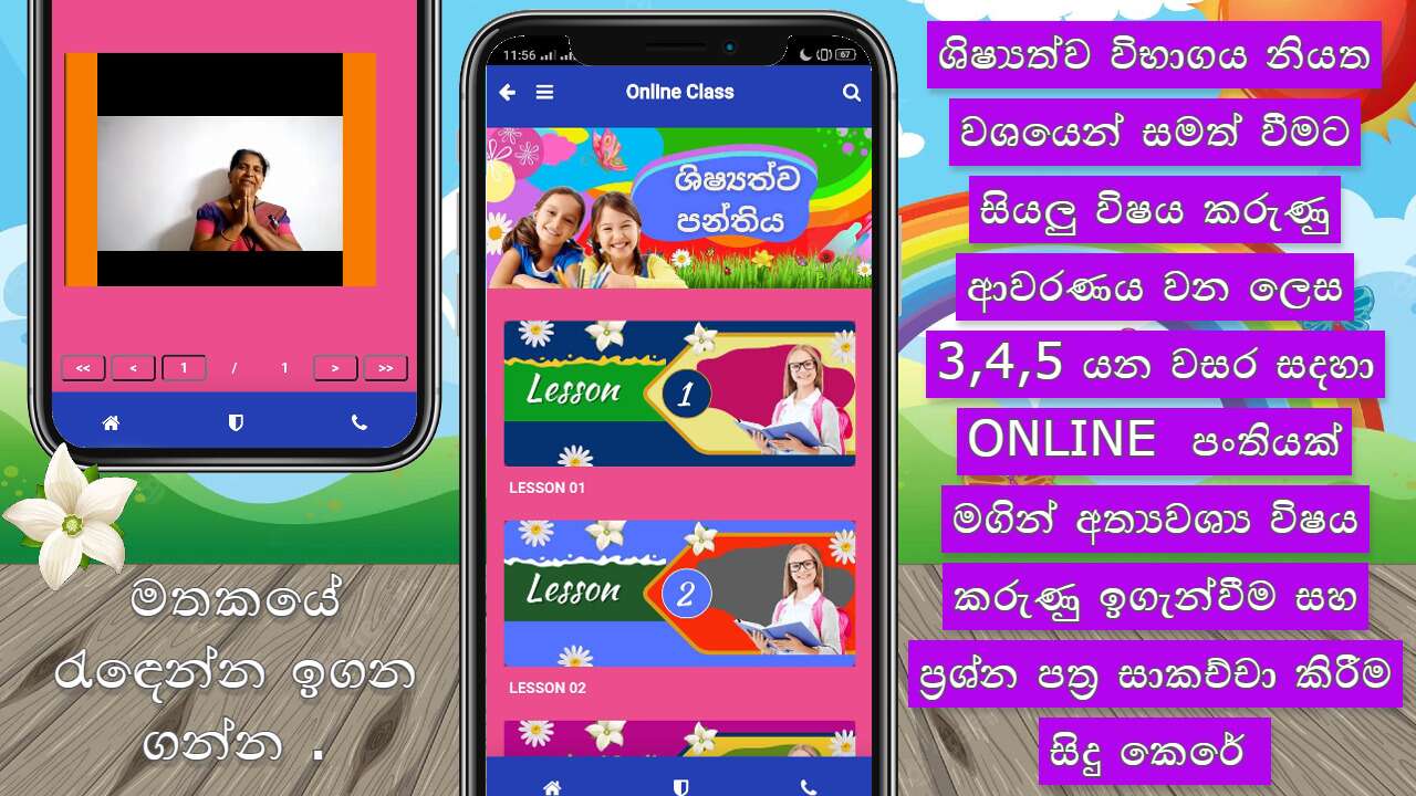 ඔබගේ දරුවන්ට නිවසේ සිටම මෙම යෙදුම හරහා පන්තියට සහභාගි වී යෙදෙමු තුළම ප්‍රශ්න වලට පිළිතුරු දිය හැකි ආකාරයට අභ්‍යාස සකස් කර ඇත. දැන් ඔබගේ දරුවන්ට පුලුවන් 1 වසරේ ඉදන්ම ශිෂ්‍යත්වය දක්වාම පහසුවෙන් ඉගෙන ගැනීමට හා ගැටළු ඇත්නම් අප වෙත යොමු කර ඒවාට විසදුම් ලබා ගැනීමට.ශ්‍රී ලාංකික දූ දරුවන්ගේ දැනුම වර්ධනය කිරීමට ඔබත් දායක වෙන්න.