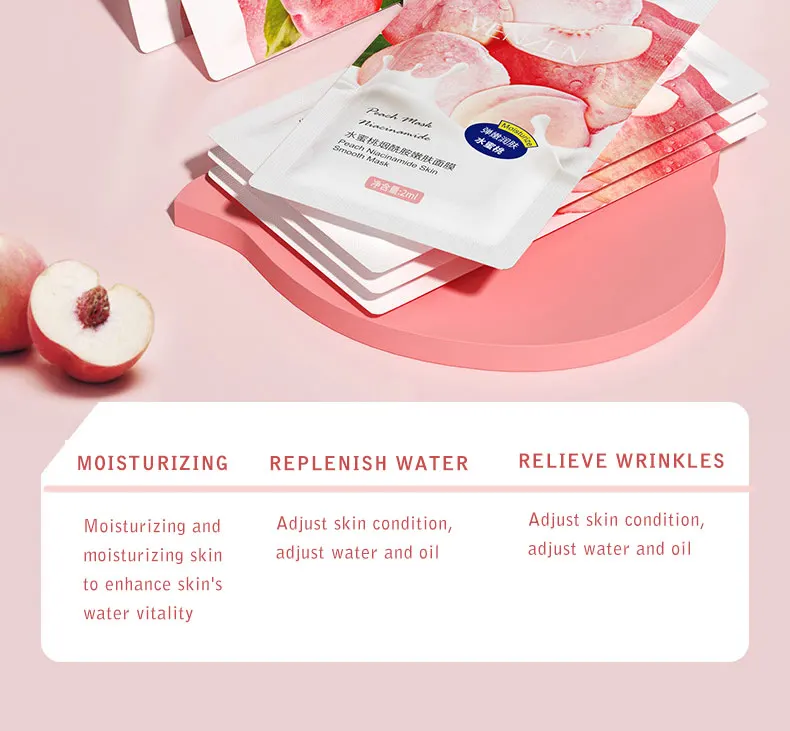 7pcs Peach Niacinamide Sleeping Mask Shrink Pore Brush Mask Moisturizing Disposable Mask Skin Care Improve Roughness & Brighten