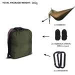 Weight:about600g for 260cm *140cm hammock,about 800g for 300cm *200cm hammock