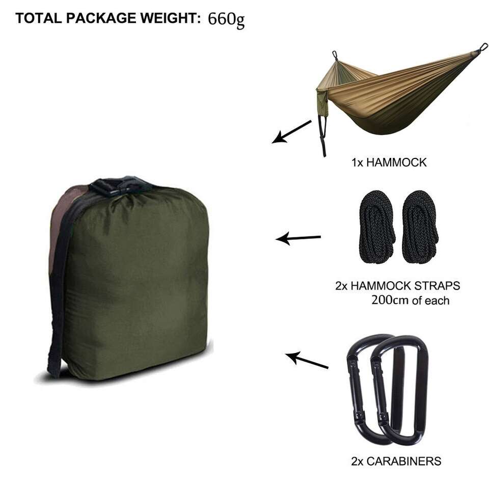 - High Quality Nylon: Our hammocks are made of high quality parachute nylon and it is strong enough to bear even two normal-weight adults.Single hammock rated at 330lbs-440lbs ,Double hammock rated at 440lbs-550lbs.
