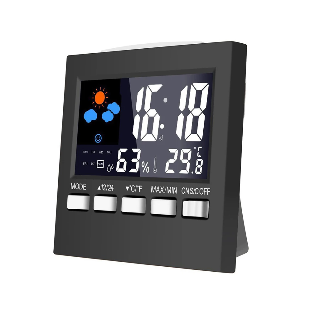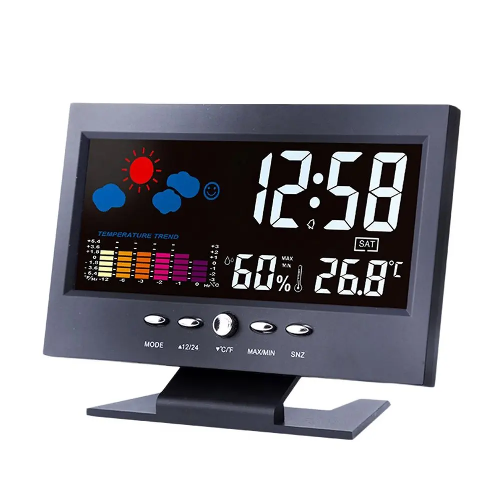 Digital Clock Thermometer Hygrometer Weather Station Alarm Clock Temperature Gauge Colorful LCD Calendar Voice-activated