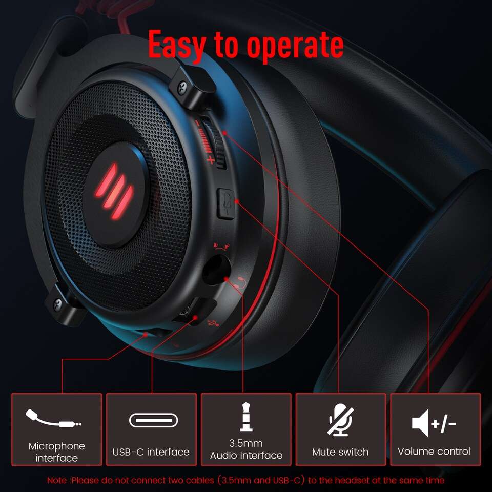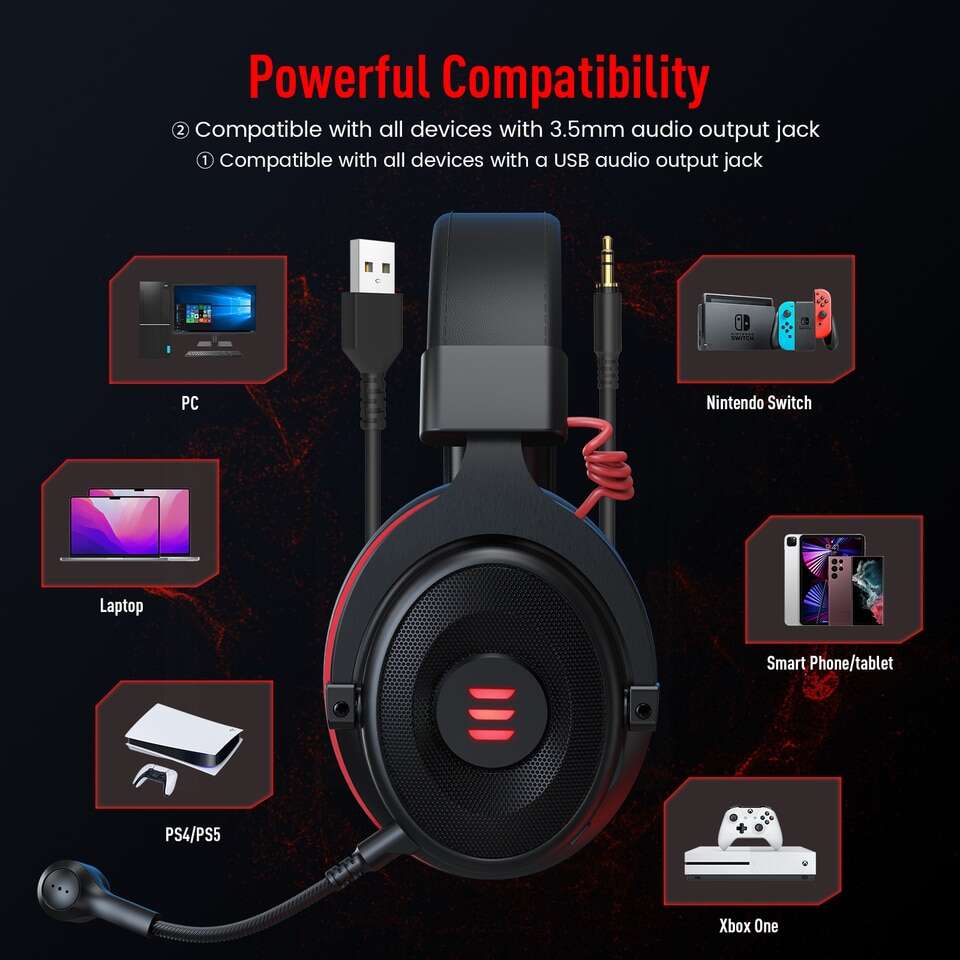 Headset Gamer Wired PC USB 3.5mm XBOX / PS4 Headsets with 53MM Surround Sound & HD Mic for Computer Laptop H2002d