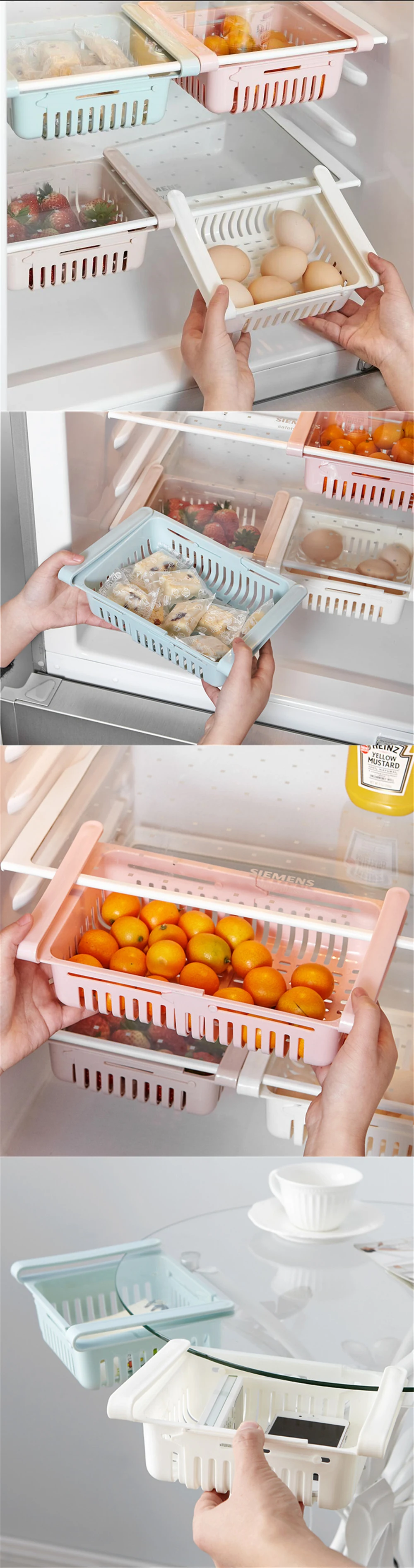 Household adjustable retractable refrigerator storage box