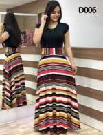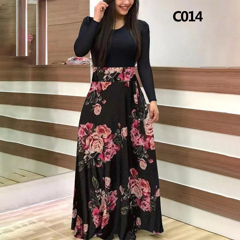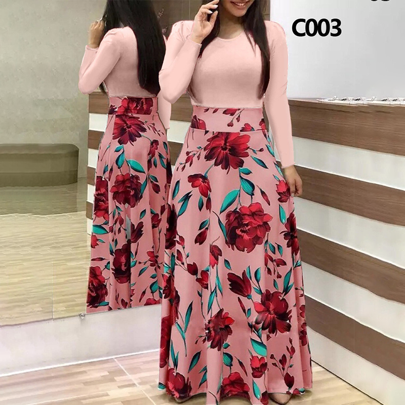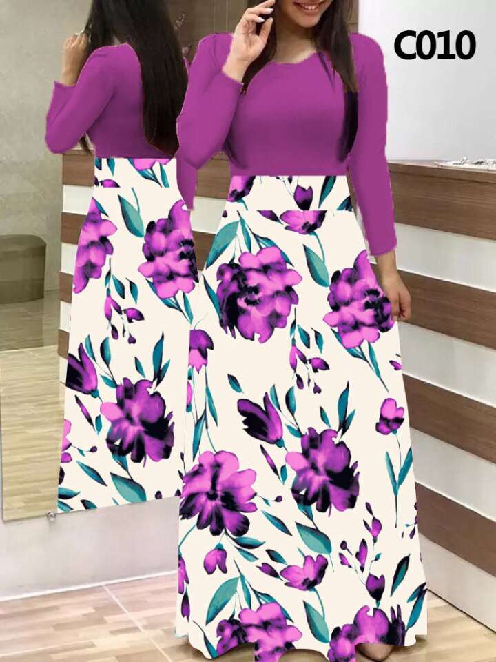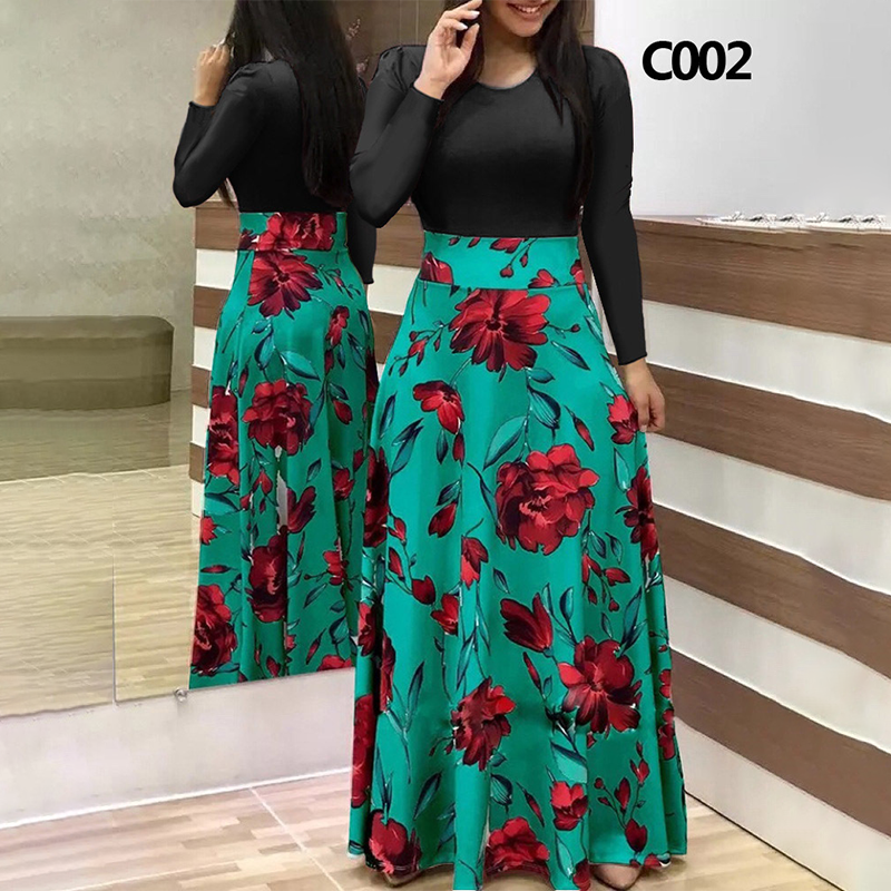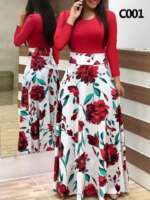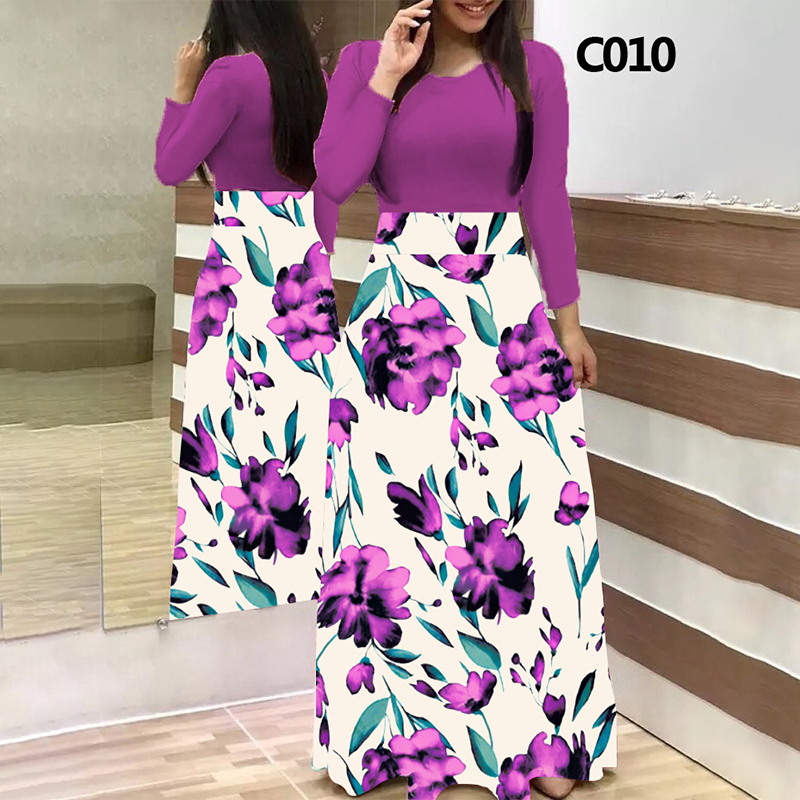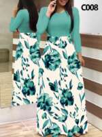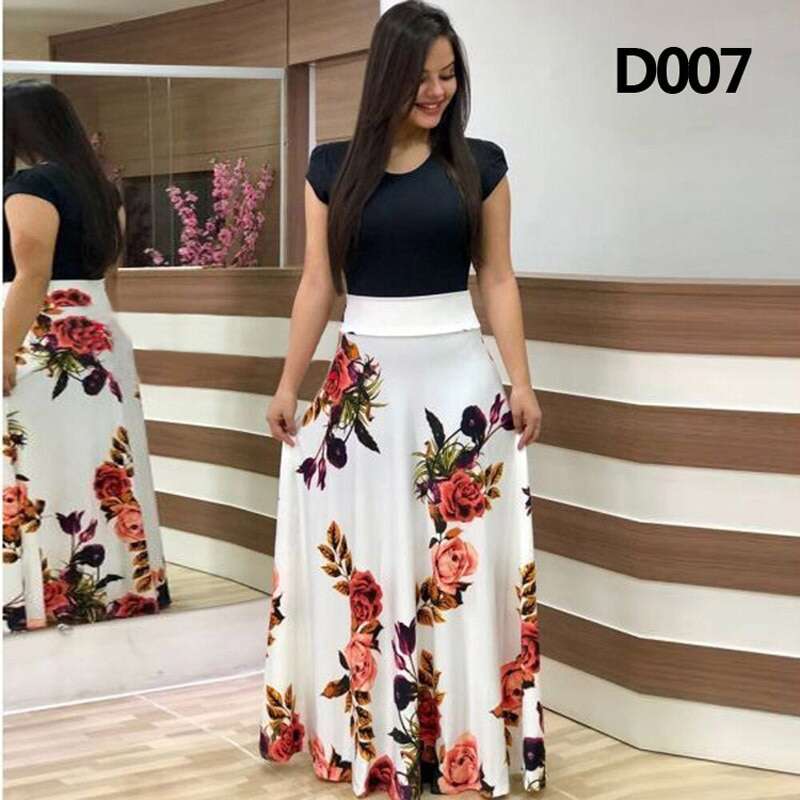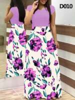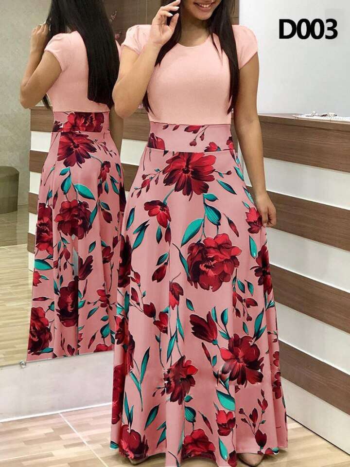 Summer Long Dress Printed Splicing Floral Banquet Round Neck Short Sleeve Tight Dress