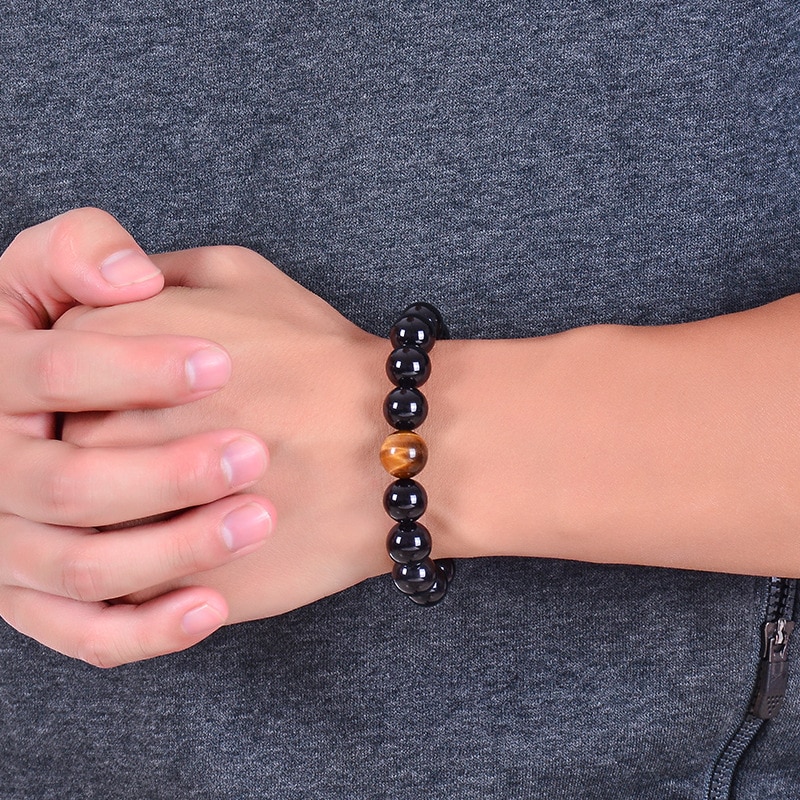 Natural Black Onyx with Tiger eye Stone Beads Men Bracelet 12 Constellation