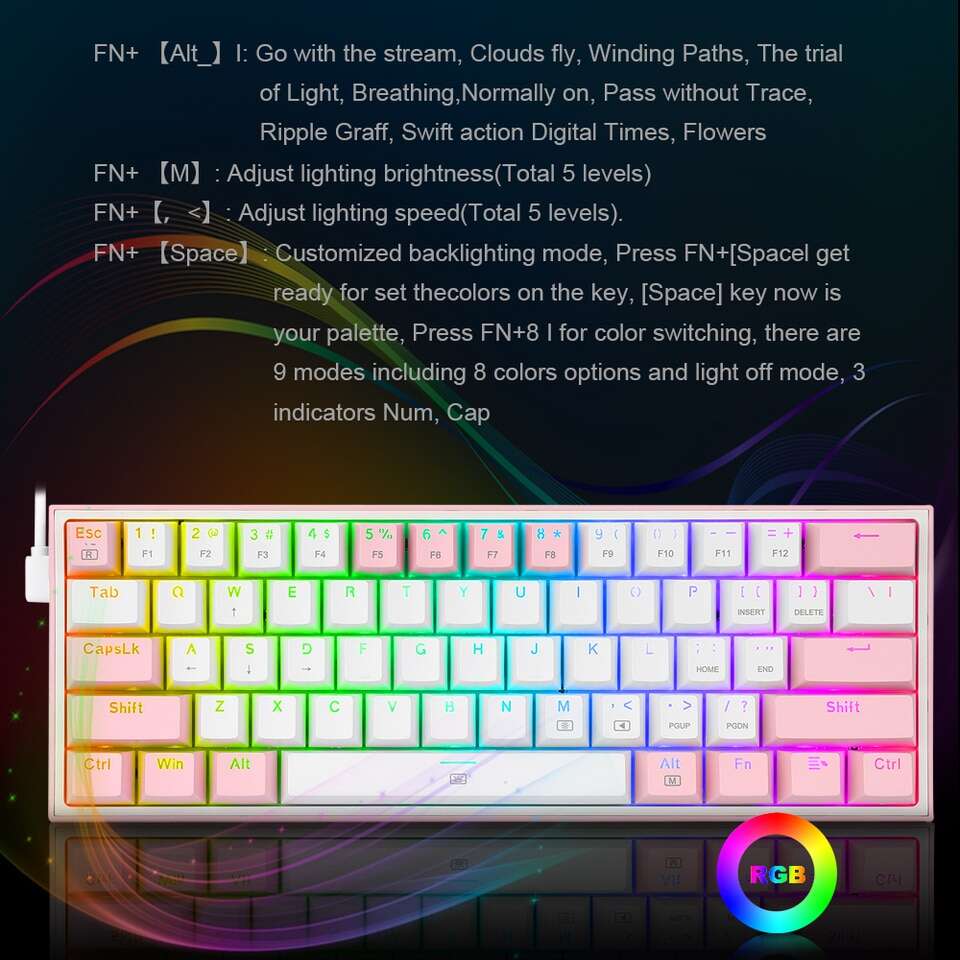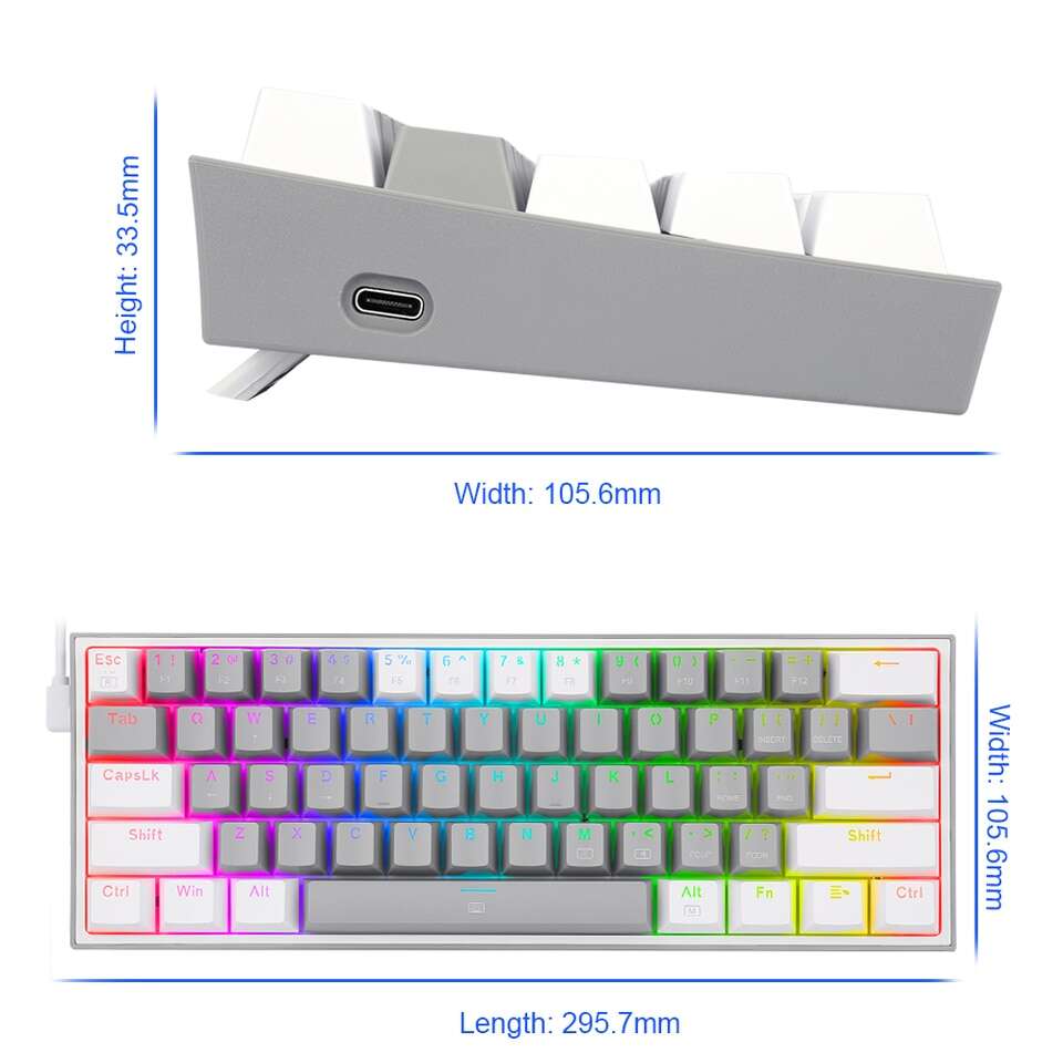 REDRAGON Fizz K617 RGB USB Mini Mechanical Gaming Keyboard Red Switch 61 Keys Wired detachable cable,portable for travel