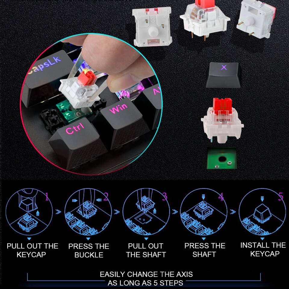 Hot-Swappable Red Switches: Most quiet mechanical switch, linear and soft key travel makes every click easy to register. Hot-swappable with other Redragon switches. Made to last with switches rated for 50 million keypresses.