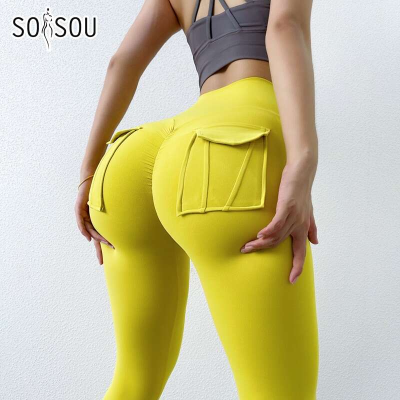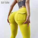 SOISOU 2022 New Leggings Women’s Pants Sport Yoga Pants Sexy Tight High Waist Elastic Women’s Panties Pocket legging mujer