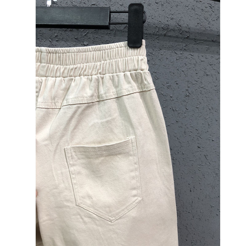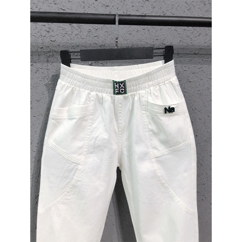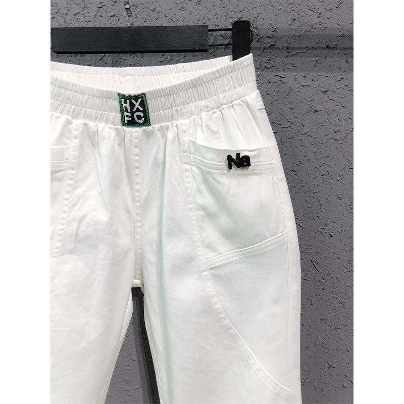 Summer Korea Fashion Women Elastic Waist Loose White Jeans All-matched Casual Cotton Denim Harem Pants S982