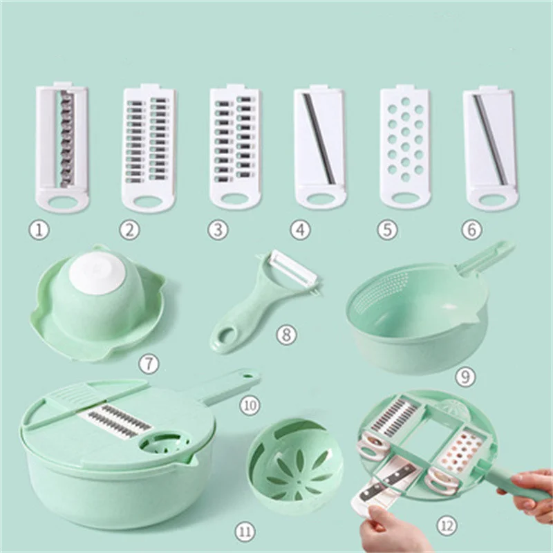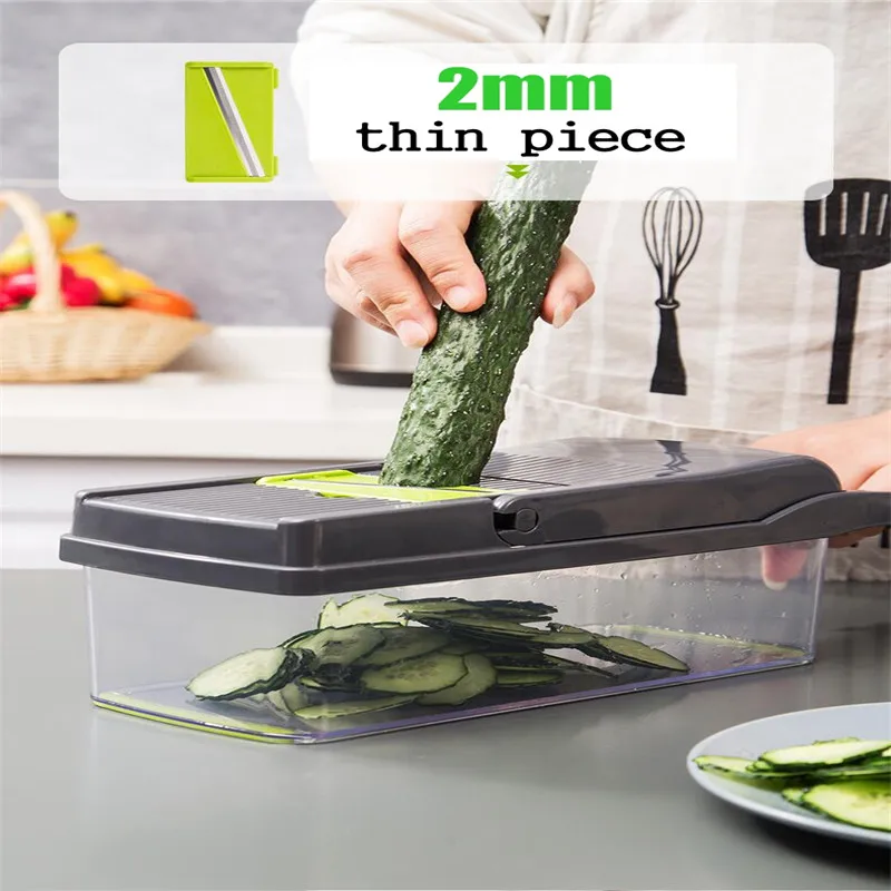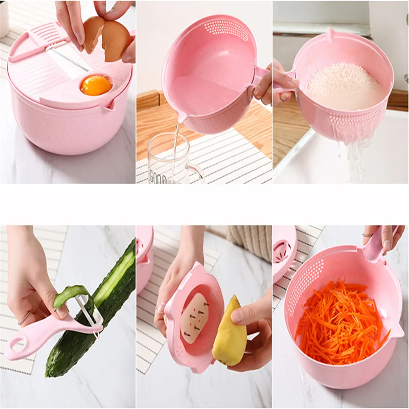 Vegetable Fruit Slicer Multifunctional Potato Shredders Grater Cutter Peeler Carrot Chopper Drain Basket