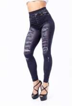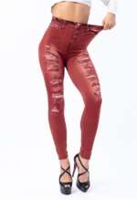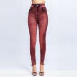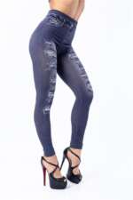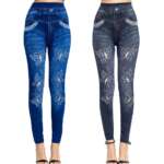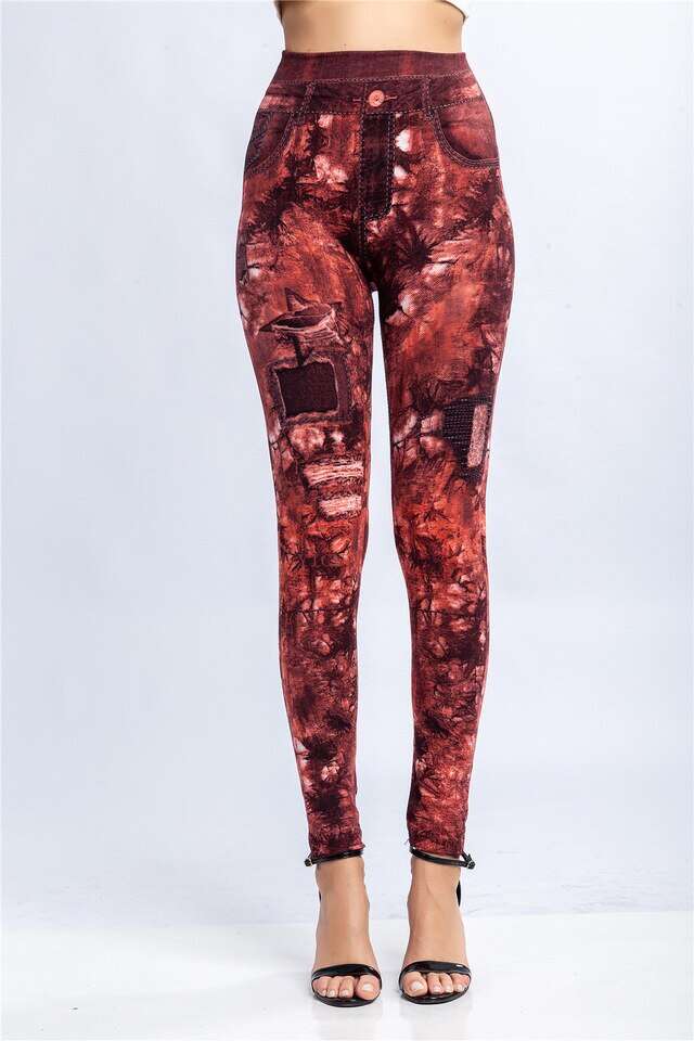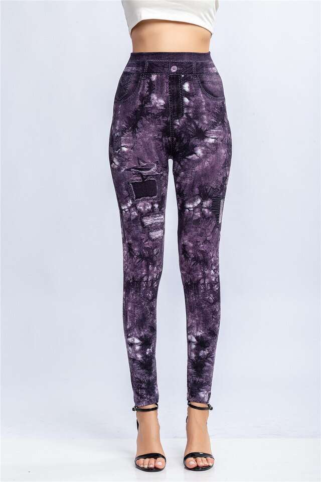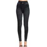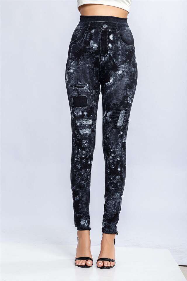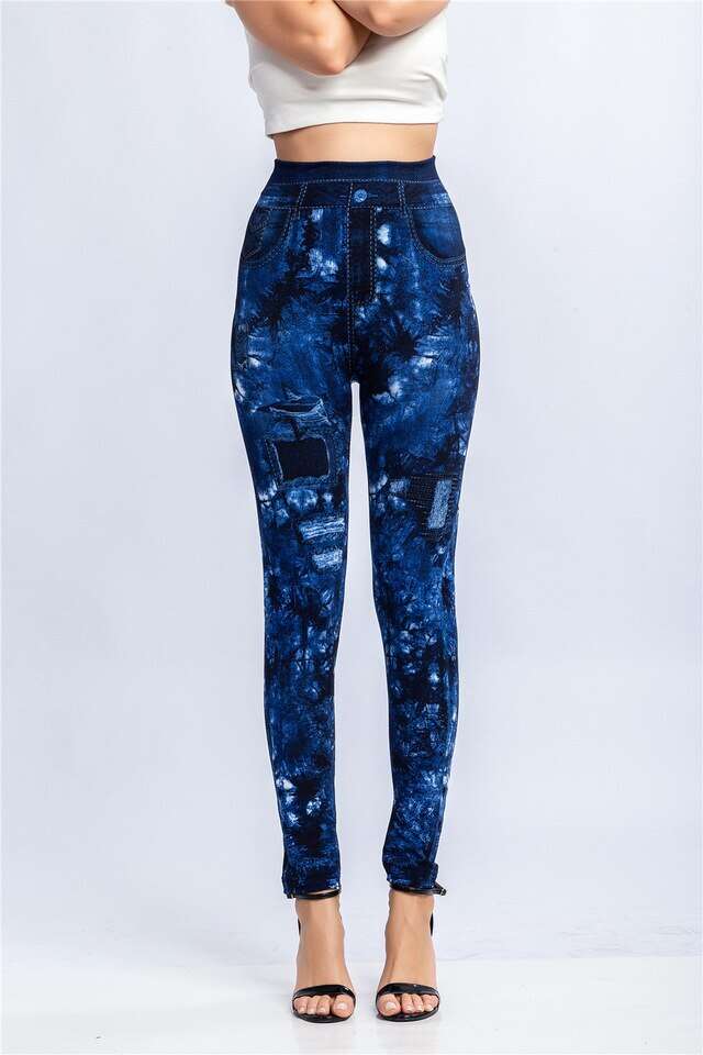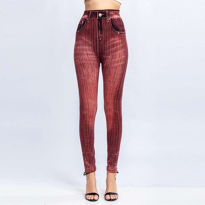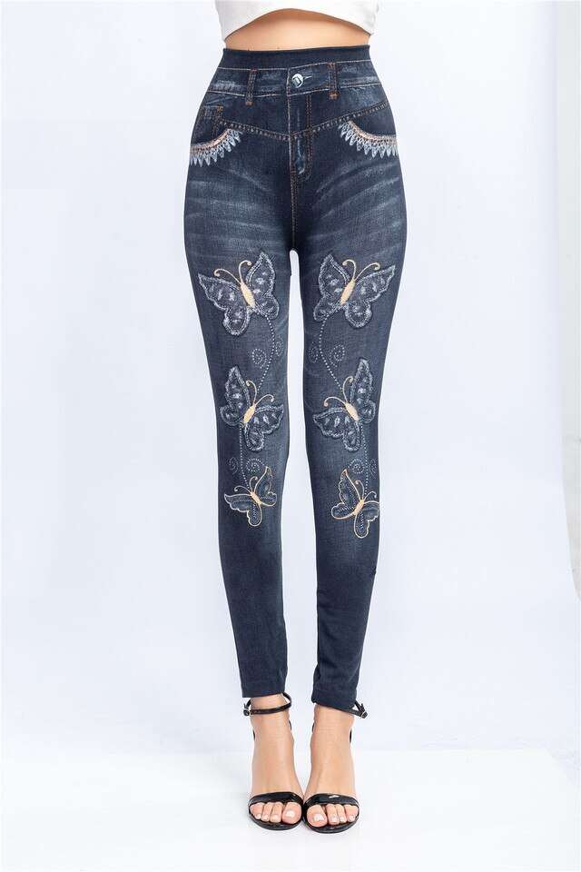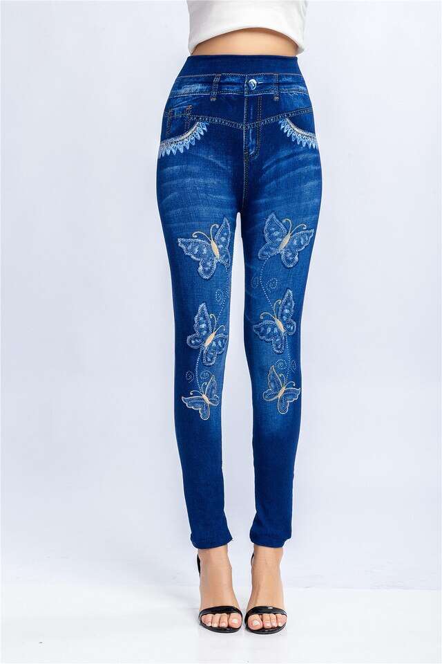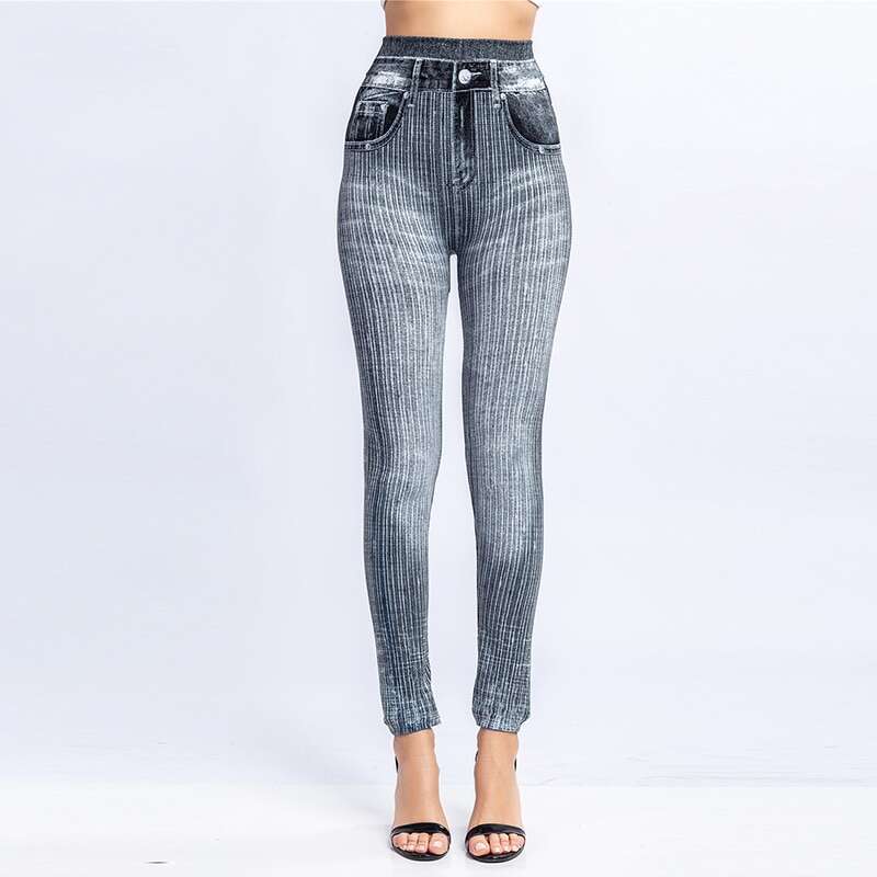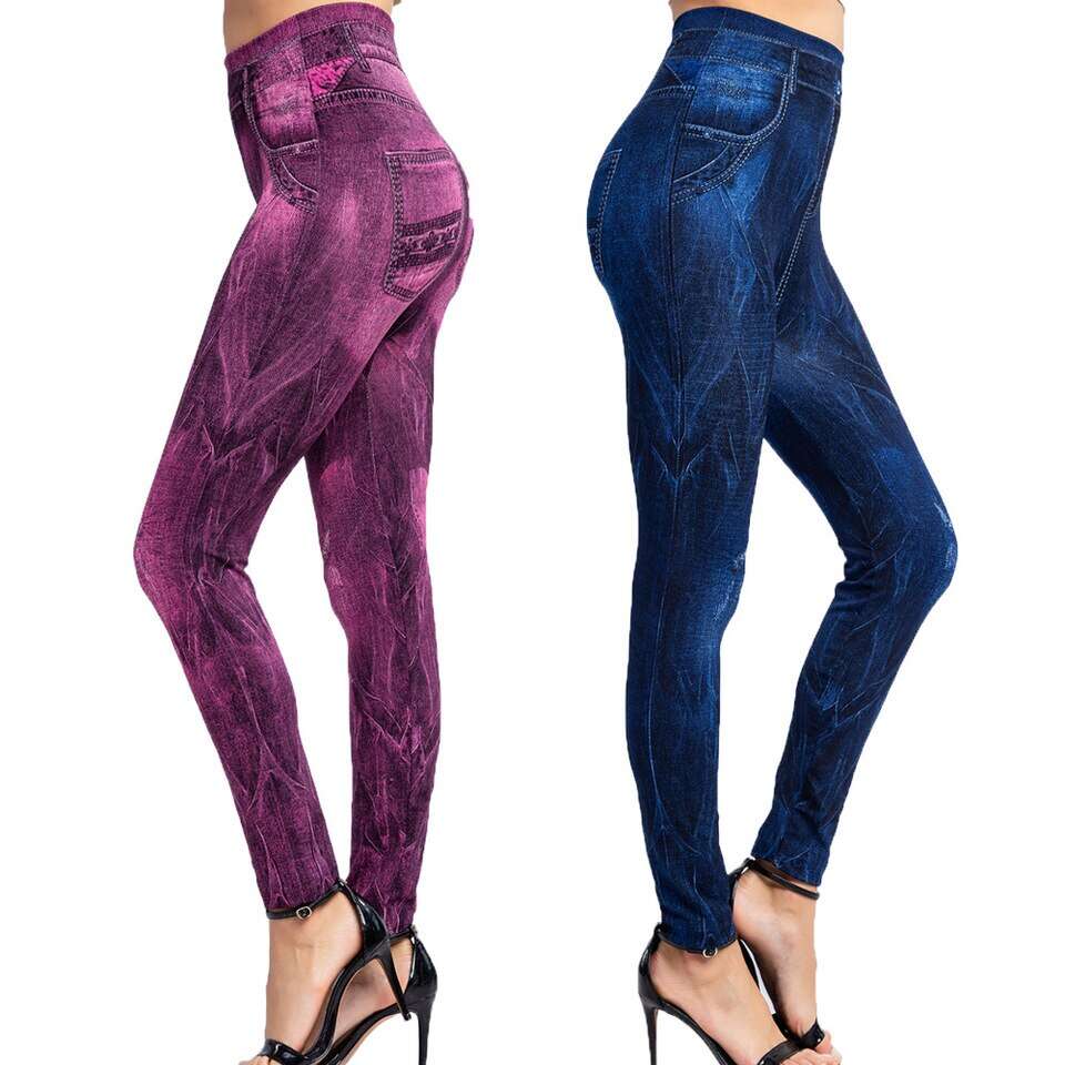 Women Elastic Shaping Pants High Waist Fitness Sports Leggings Faux Denim Jeans Gym Workout Running Slim Push Up Trousers