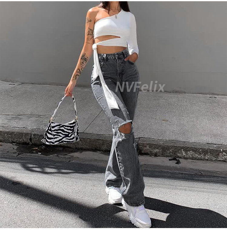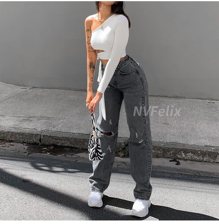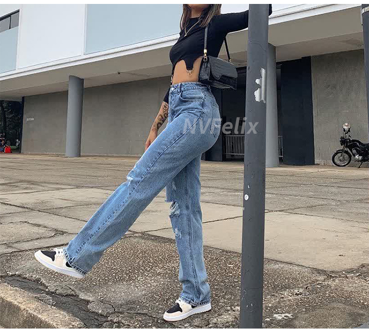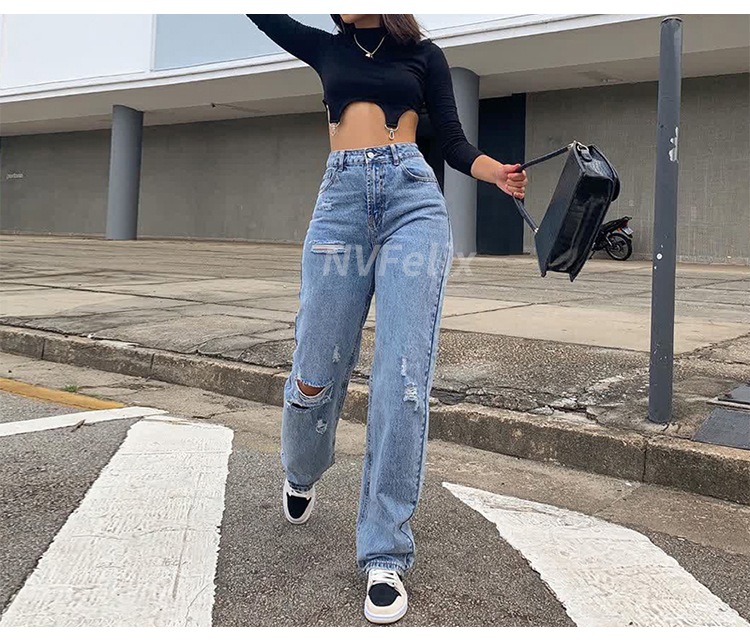 Women High Waist Straight Denim Mom Pants Baggy Jeans Women Washed Blue Casual Female Cotton Pants New