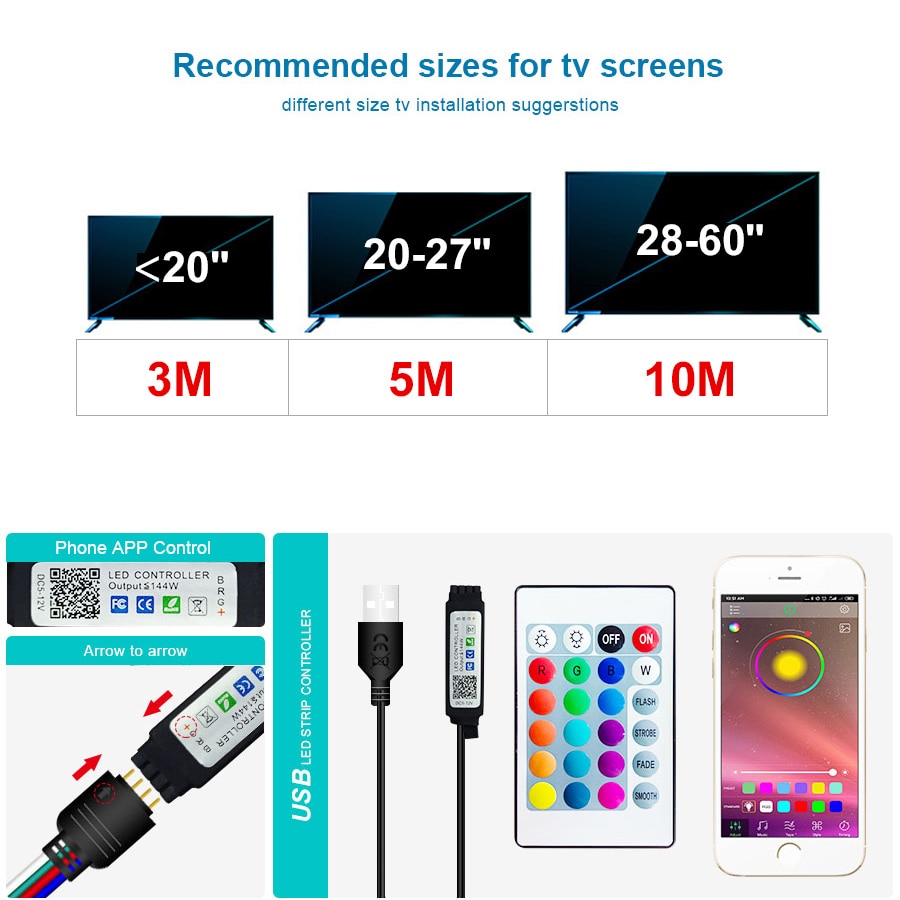 $22.24 – $25.76Price range: $22.24 through $25.761M 2M 3M 5M 10M LED Strip Light Flexible Lamp USB Bluetooth Led Lighting RGB