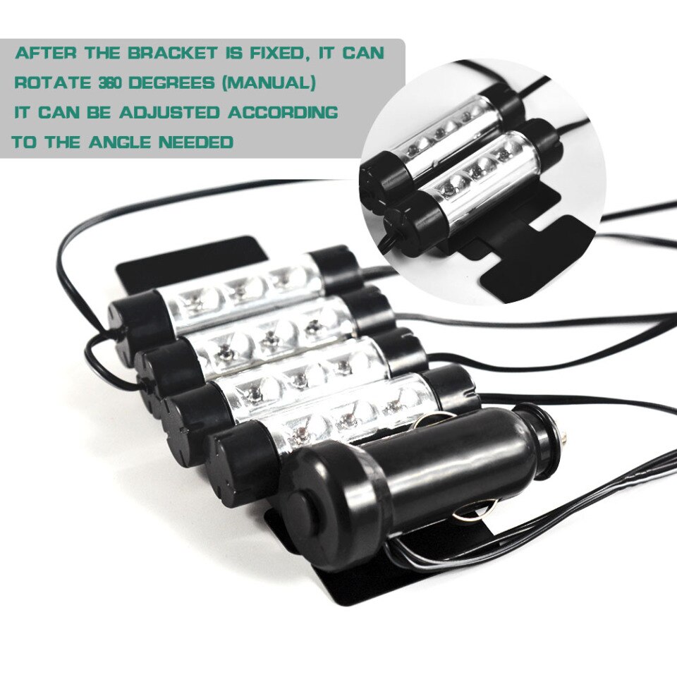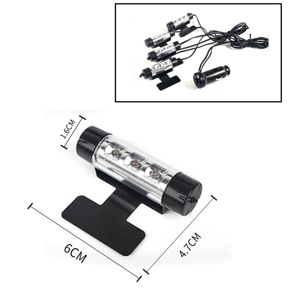 4 x 3 LED 12V Car Interior Atmosphere Blue Light Charge Floor Decor Lamp Accessories