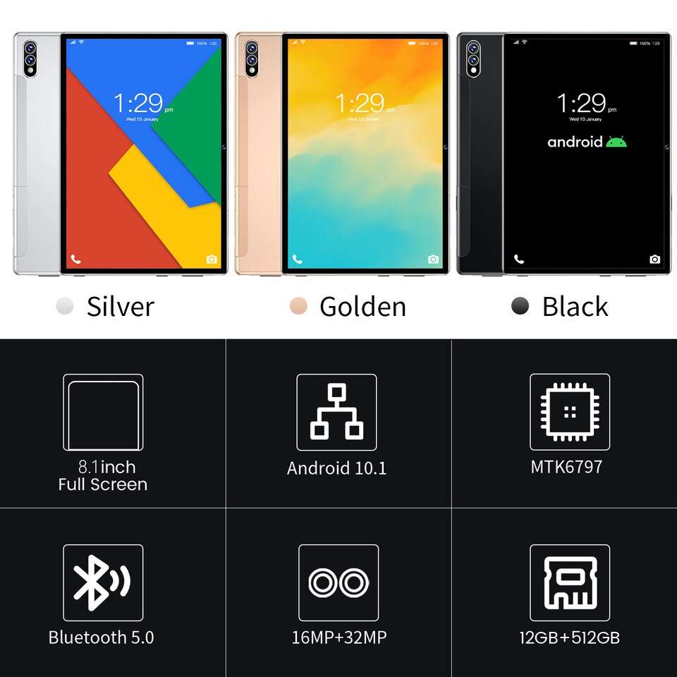 Tablet PC 5G LTE 12GB+512GB 8.1 Inch Android10.1 8000mAh Laptop 16MP+32MP Camera Bluetooth WIFI Google Play Netbook